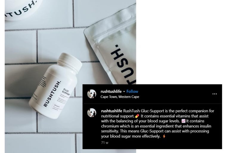 RushTush is a South African health and wellness brand offering lifestyle products, fitness plans, and nutritional support.